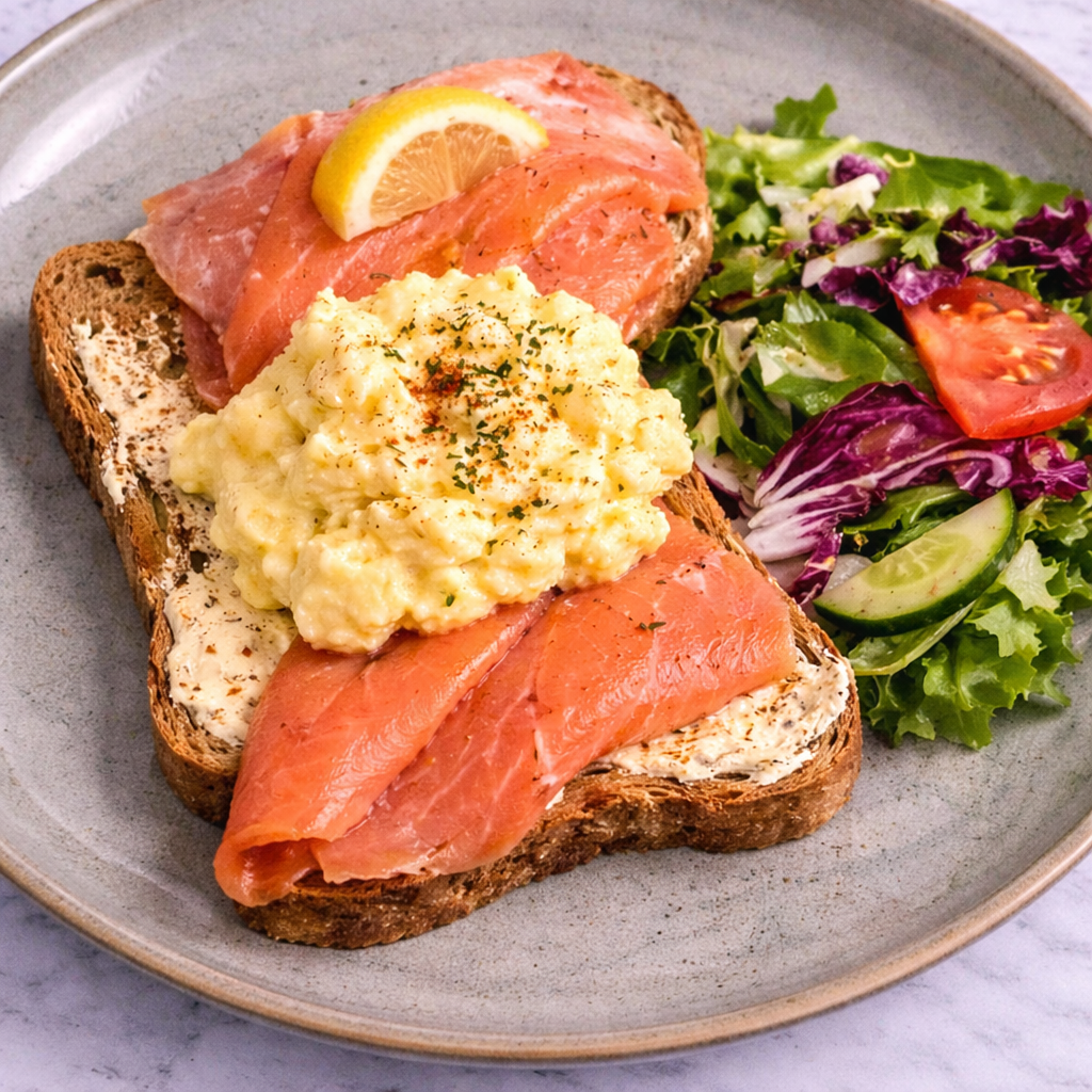 £9.95smoked salmon, lemon, scrambled or poached egg, toast