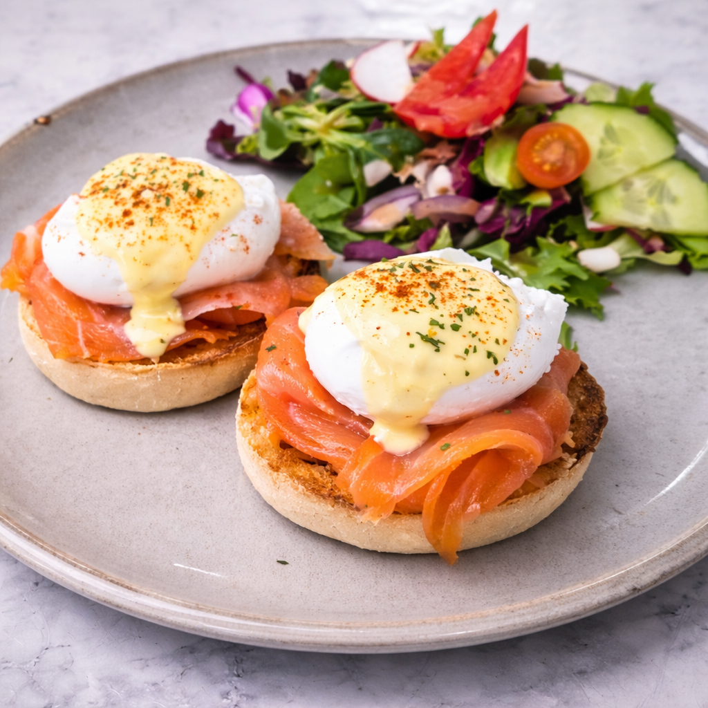 £10.50smoked salmon, poached eggs, hollandaise, toasted muffin